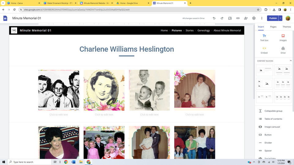 Want to be able to continually update your loved one’s website? With administrative access, you will have the ability to add stories, pictures, documents, and links on your own time with up to 3GB of storage space. . The sky is the limit on the ways you can customize your loved ones memorial website. Must have a Gmail account.
