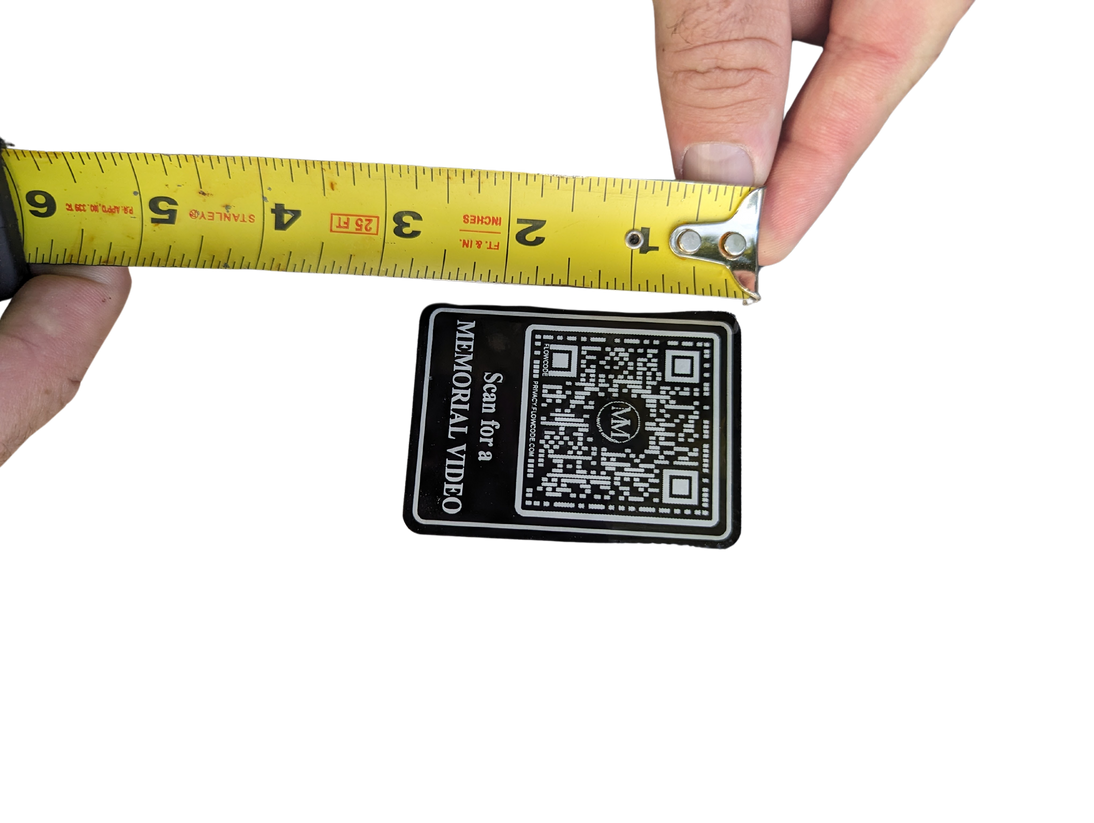 Minute Memorial plaques are 2.5" x 2" of T 0.02" thick aluminum. With a slim profile, this plaque aligns seamlessly with headstones, avoiding protrusion and potential snags, contributing to its extended lifespan.